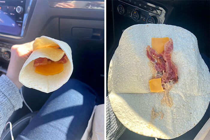 We often enjoy buying wraps for breakfast or lunch because they’re quick to eat and satisfying. Unfortunately, one person had a disappointing experience when they discovered their wrap was less than a quarter full. They requested the wrap without an egg.