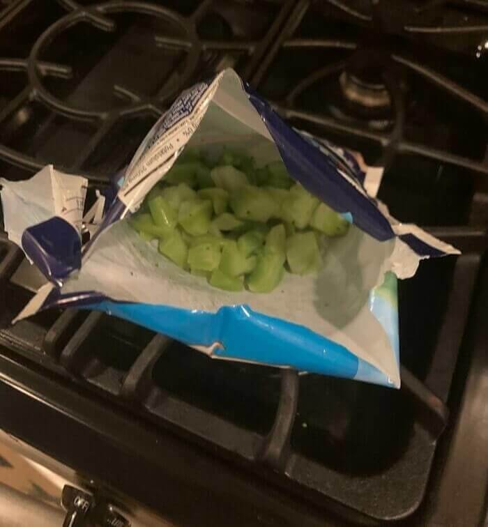 This food scam is one of the reasons we recommend people buy vegetables with transparent packaging or from a trustworthy market. The individual in this image was very surprised when they purchased a packet of broccoli florets for their meal.