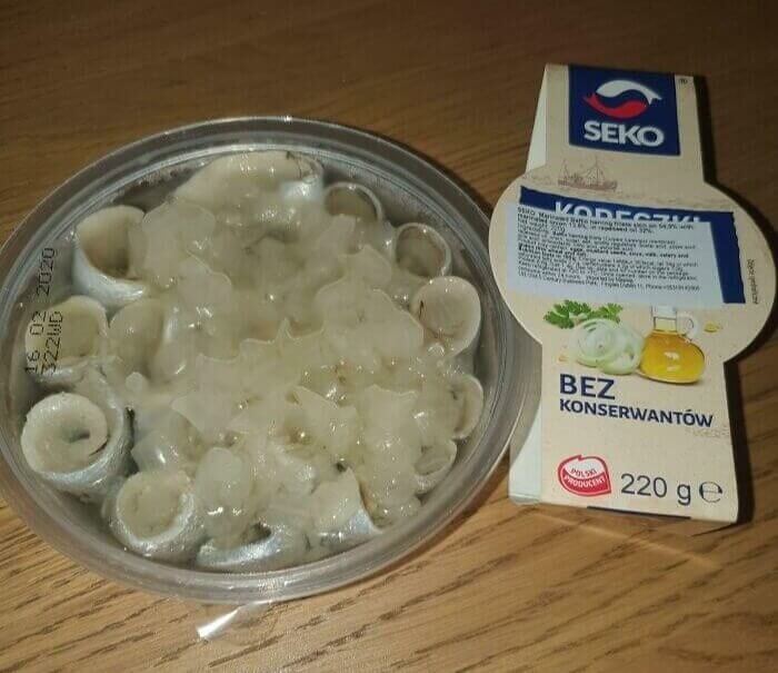 The buyer assumed they were getting plenty of fish since the box appeared full. But upon opening it, they discovered that the stuffing was mostly onions rather than fish. The seafood was limited to the thin outer layers wrapped around the vegetable.