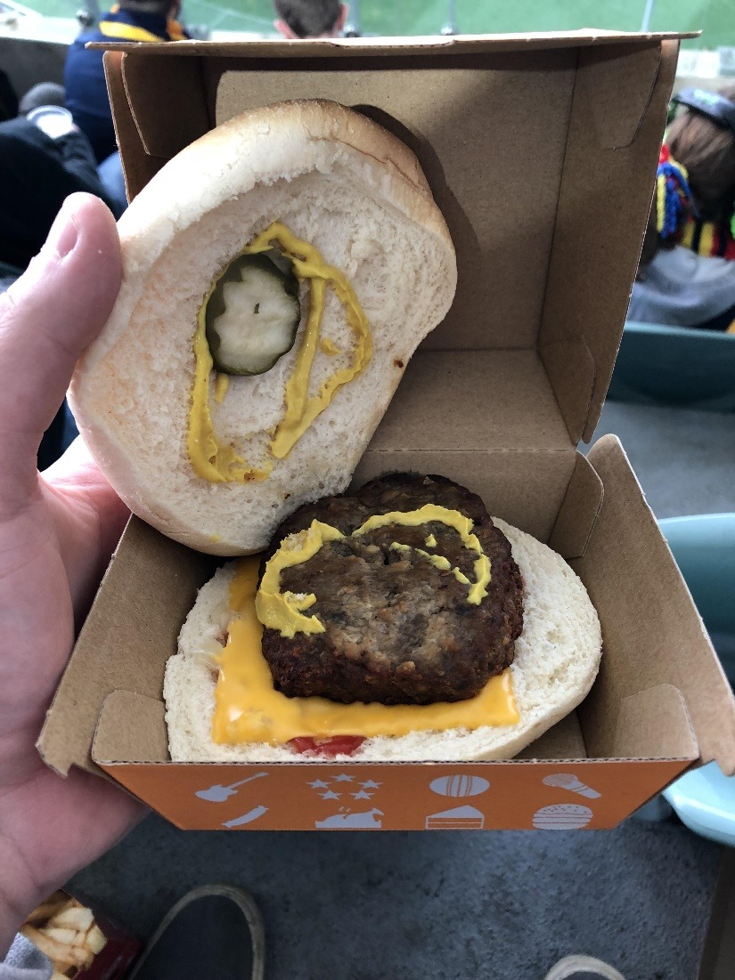 It cost the individual $10 and had no sauce. There was just one tomato, and the patty wasn’t big enough to cover the entire bun. Overall, this burger is neither attractive nor satisfying, which is disappointing given its $10 price tag. This exemplifies why you shouldn’t rely on stadiums for quality offerings.
